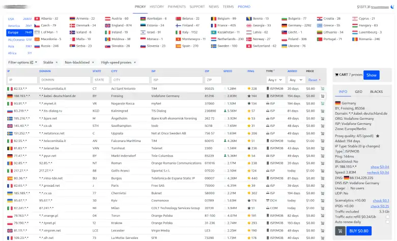 Mobile proxy LTE, Residential proxies. We check all proxies for Black Lists before purchase, and if it appears, we offer 50% off.